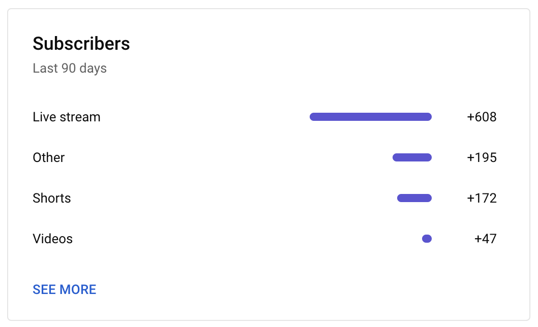 I gained more subscribers from live streams than any other format. The difference was 194 more than all the other ways combined.